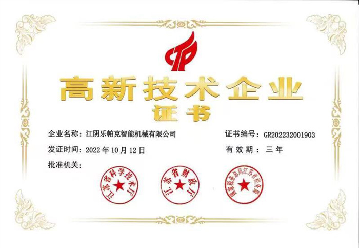 高新技術企業證書