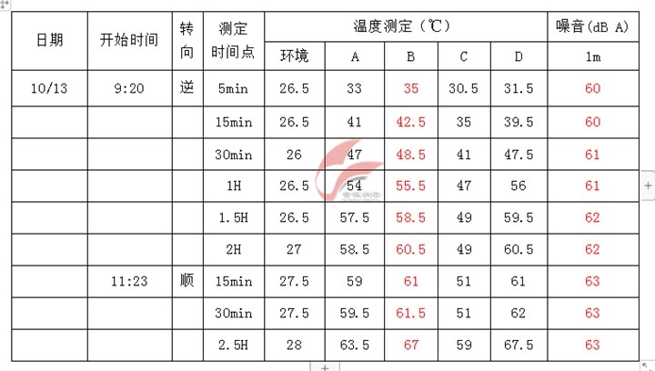從測試記錄上判斷,使用FAKKT-MG33002油脂測試,兩種齒型的行星減速機,溫升,噪音及油膜狀況都良好,滿足廠家要求。