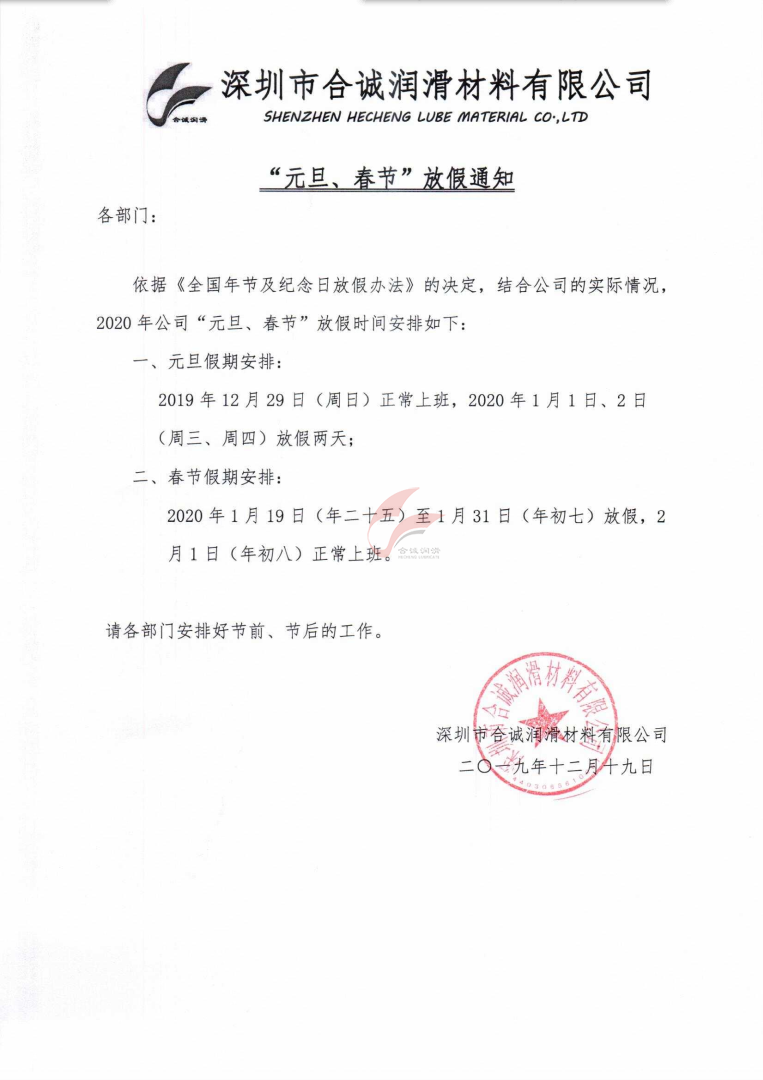 深圳合誠元旦、春節假期通知